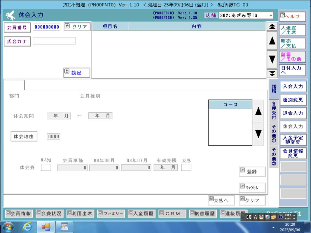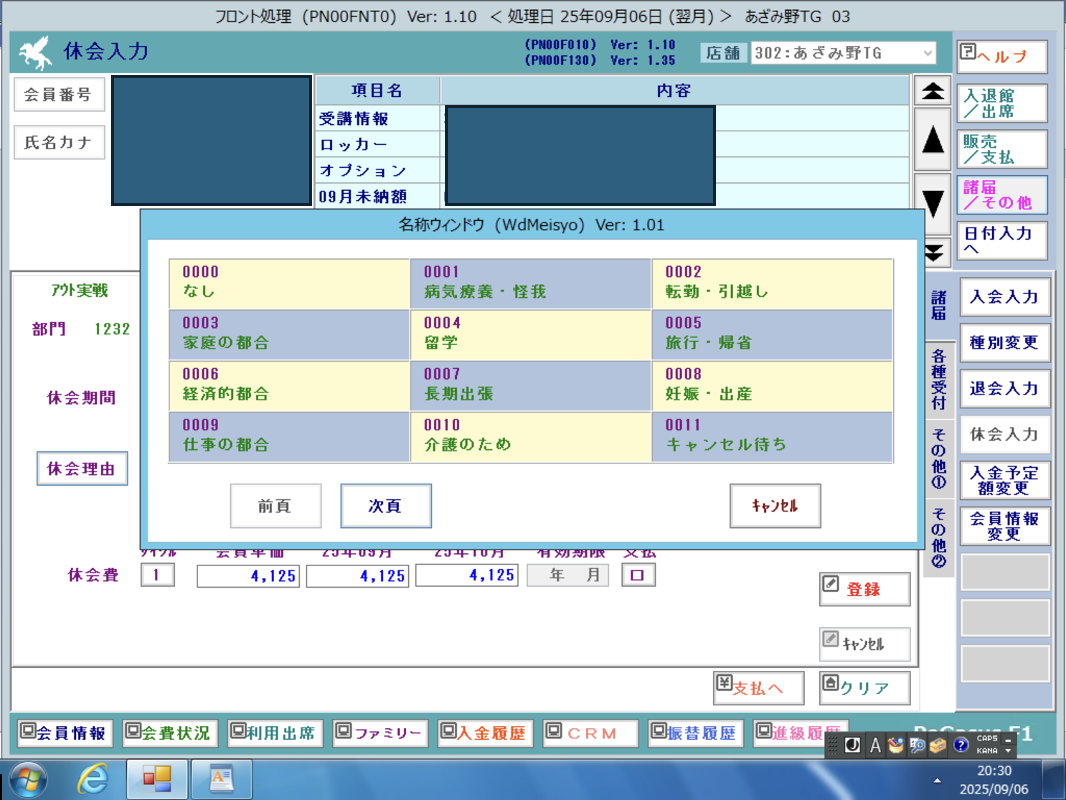 - 休会入力画面で【例】1月〜2月→1月〜1月に変更して登録